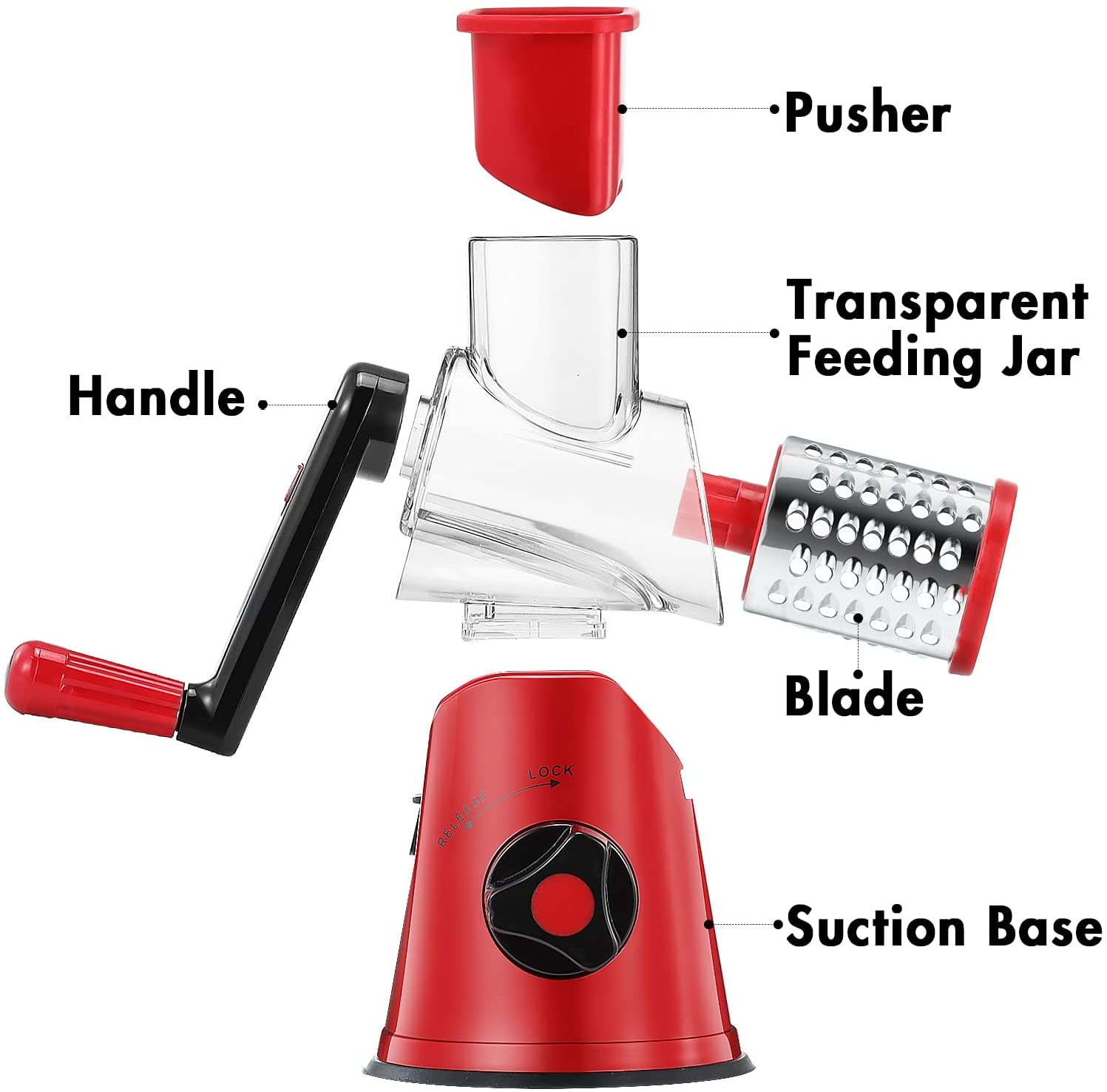 Cheese Grater Rotary, Rotary Grater for Kitchen with 3 Drum Blades